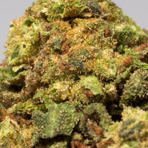 Strawberry is best known for its sweet, berry-forward taste. Smoking it is like biting into fresh strawberries drizzled with cream and sugar, followed by an earthy undertone that lingers on the palate. Its aroma is just as enticing, with a mix of ripe strawberries, subtle spice, and a touch of earthiness. The buds themselves are dense and popcorn-shaped, showcasing a dark olive green color. Light amber hairs weave through the flowers, while a thick coating of sticky resin makes the nugs sparkle, signaling their potency and quality.