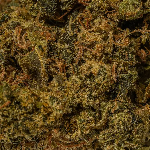 Strawberry is best known for its sweet, berry-forward taste. Smoking it is like biting into fresh strawberries drizzled with cream and sugar, followed by an earthy undertone that lingers on the palate. Its aroma is just as enticing, with a mix of ripe strawberries, subtle spice, and a touch of earthiness. The buds themselves are dense and popcorn-shaped, showcasing a dark olive green color. Light amber hairs weave through the flowers, while a thick coating of sticky resin makes the nugs sparkle, signaling their potency and quality.