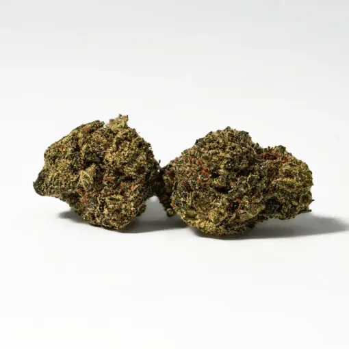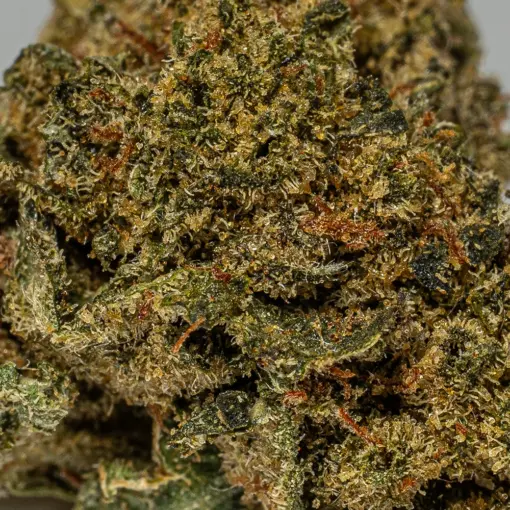 Grease Monkey is an indica dominant hybrid strain created through crossing the classic Gorilla Glue #4 with the delicious Cookies & Cream strain. This potent bud brings on the powerful effects and highly addictive flavor, flawlessly fusing those of its parent strains. With each rich inhale comes flavors of nutty vanilla and sweet skunky diesel. The aroma is just as delicious with an earthy pungency accented by sugary skunky diesel and a touch of vanilla. The Grease Monkey high is a creeper, building up behind the eyes before suddenly taking hold. You’ll suddenly feel a slam to the head of euphoric relaxation that lulls you into a mental state of calm and haze. This effect will quickly become sleepy, easing both mind and body into a completely sedated state that’s calming and relaxing. Thanks to these effects and its super high 22-24% average THC level, Grease Monkey is the perfect choice to treat conditions such as chronic pain, appetite loss or nausea, insomnia, headaches or migraines, and inflammation. This bud has fluffy tapered forest green nugs with sparse orange hairs and a coating of tiny clear crystal trichomes.