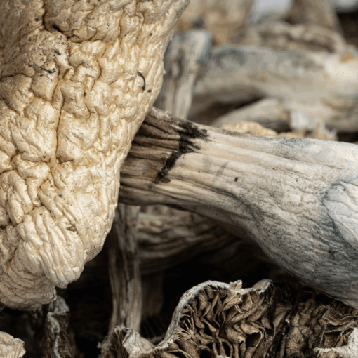 Visually, this strain produces medium to large fruiting bodies with golden-yellow to caramel-colored caps, often with a slightly wavy edge, and thick, sturdy stems that bruise blue when handled. Golden Teachers are known for being resilient and easy to cultivate, making them a top choice for both beginners and experienced growers.