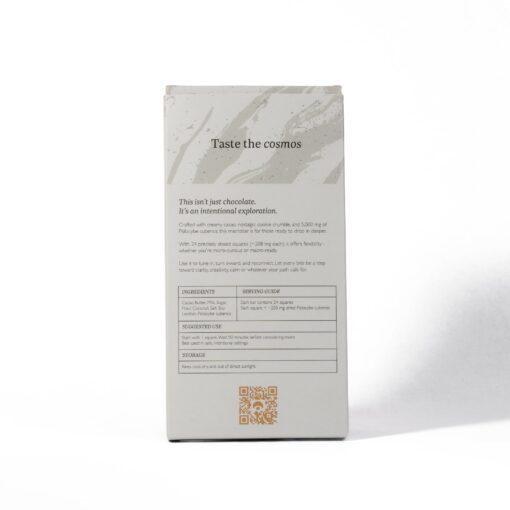 Embark on a journey beyond the ordinary with our Cosmic Cookies & Cream adventure — more than just a treat, it’s a celestial experience for the senses. Expertly crafted by a legendary chocolatier, this indulgent macrobar blends timeless cookies and velvety cream-infused chocolate, finished with a whisper of enchantment. Each bite invites you to drift deeper into a starlit escape, where flavor and feeling align in cosmic harmony. Infused with 5,000mg of psilocybe mushrooms, the entire bar is thoughtfully divided into 24 squares, delivering approximately 208mg per piece — allowing you to customize your journey, one star-kissed square at a time.