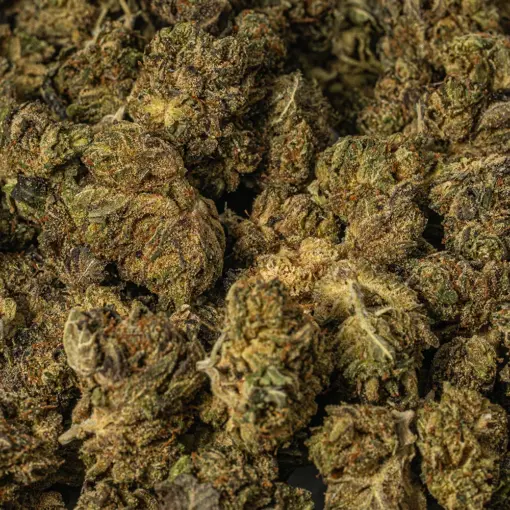 Grizzly Pink is a potent indica-dominant hybrid known for its high THC levels, dense frosty buds, and a bold mix of sweet, gassy, and earthy aromas. It delivers a quick euphoric lift followed by deep full-body relaxation and heavy sedation, making it ideal for nighttime use.