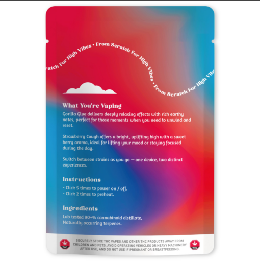 Heavy meets happy in this bold hybrid duo. Gorilla Glue grounds you with deep body calm, while Strawberry Cough lifts the mood with fruity brightness. A 6g dual-strain device built for chill, focus, or the sweet spot in between.